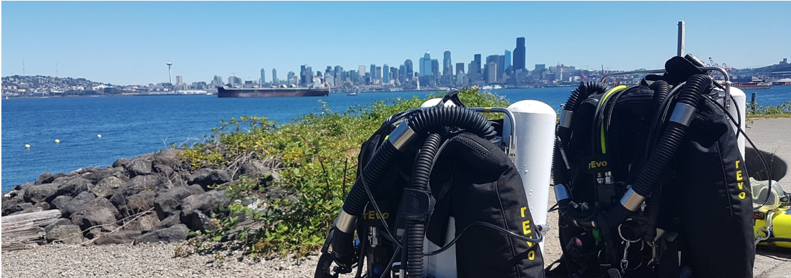 Also commonly referred to as “Seacrest Park Cove 2” or just “Cove 2”, this dive site is one of the most popular in Seattle. Stairs on either side lead to a mildly steep rocky beach entry. Dive site has a gradual depth to 90’ with many artificial features that host marine life. No-dive boat lane is marked by yellow and orange buoys.